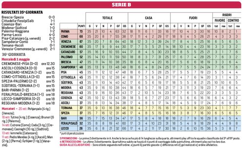 L’edizione odierna de “Il Corriere dello Sport” ha stilato quello che sarà il programma della 36^ giornata di serie B.