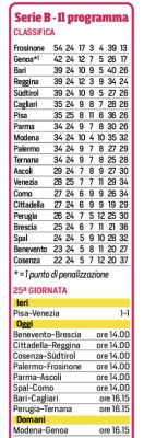 L’edizione odierna de “Il Corriere dello Sport” si sofferma sulla 25^ giornata del campionato di serie B.