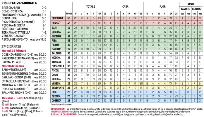 Dopo le gare del venerdì e del sabato, si conclude la 26a giornata di Serie B con la sfida tra Ascoli e Benevento.