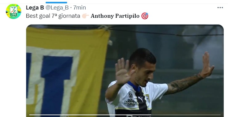 Lo scorso mercoledì il Parma ha vinto 2 a 1 in casa contro il Bari, match in cui Anthony Partipilo ha realizzato una rete degna di nota. Secondo la Lega Serie B è del giocatore ducale il gol più bello della settima giornata: