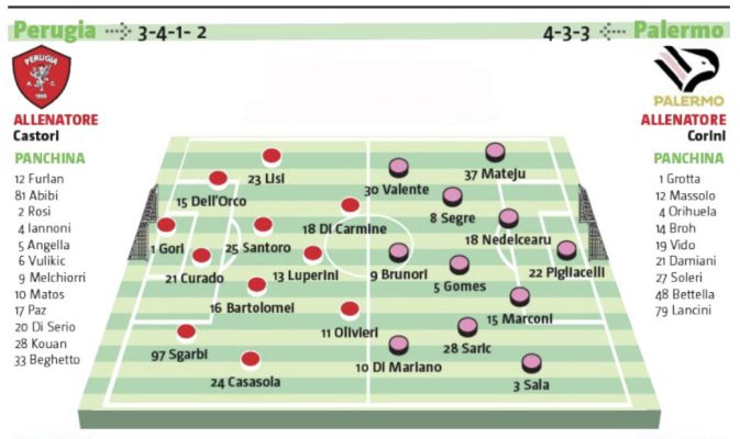 Serie B, Perugia-Palermo. Le probabili formazioni e come vederla in tv
