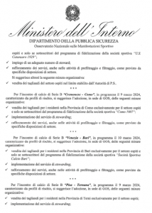 L’Osservatorio Nazionale sulle Manifestazione Sportive indica le restrizioni da prendere nelle gare ritenute a rischio in vista della 29^ giornata di B.