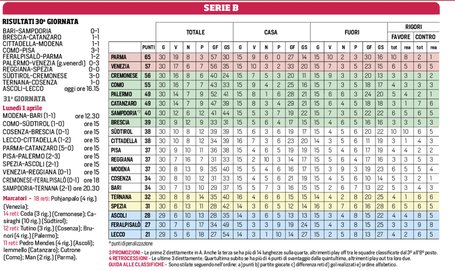 Serie B, si chiude la 30a giornata. Il programma e la classifica aggiornata