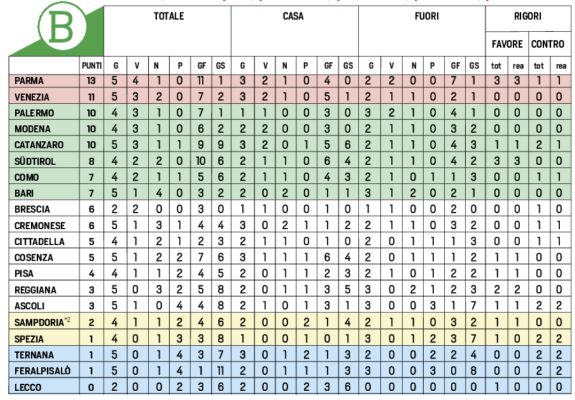 Serie B, si chiude la quinta giornata. Il programma e la classifica aggiornata