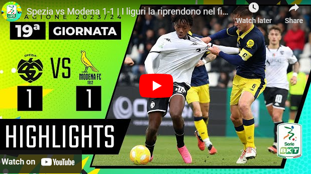 Termina 1-1 il match di serie B tra Spezia e Modena.
