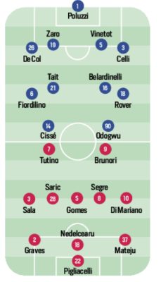 A disposizione: 25 Minelli, 29 Marano, 55 Masiello, 2 Berra, 45 Giorgini, 4 Curto, 23 Pompetti, 88 Schiavone, 20 Eklu, 10 Carretta, 7 Siega, 32 Larrivey