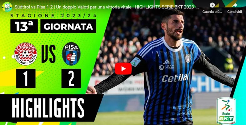 Serie B, Sudtirol-Pisa 1-2: gli highlights del match (VIDEO) Segui Ilovepalermocalcio su Google News Redazione Ilovepalermocalcio Novembre 11, 2023 Termina 1 a 2 il match tra Sudtirol e Pisa. Ecco gli highlights: