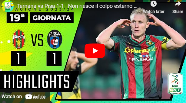 Serie B, Ternana-Pisa 1-1: gli highlights del match (VIDEO) Segui Ilovepalermocalcio su Google News Redazione Ilovepalermocalcio Dicembre 26, 2023 Termina 1-1 il match di serie B tra Ternana e Pisa. Ecco gli highlights del match: