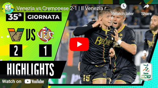 Termina 2-1 il match di serie B tra Venezia e Cremonese.