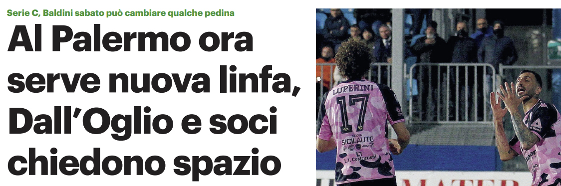 L’edizione odierna de “Il Giornale di Sicilia” si sofferma sulla gara in programma sabato tra Palermo e Vibonese e le scelte di Baldini.