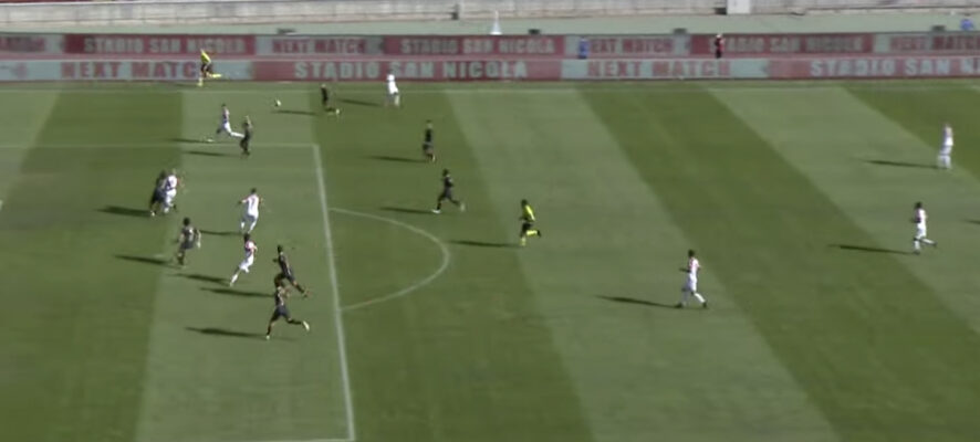 Dopo quarantacinque minuti, il Bari guida nel punteggio sul Catanzaro grazie alle reti di Antenucci e Simeri. Il provvisorio pari ospite è stato siglato da Cianci.