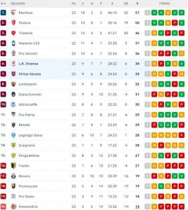 Serie C Girone A: Vicenza-Virtus Verona e Pro Sesto-Pro Vercelli finiscono 0 a 0. La classifica aggiornata