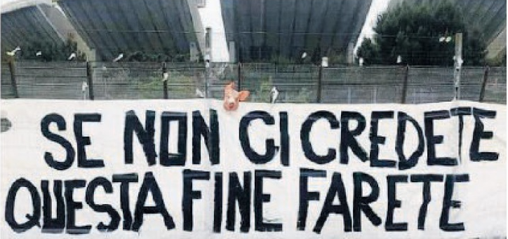Novità sulle intimidazioni ricevute dai giocatori del Bari nei giorni scorsi, iniziate con striscioni recanti le scritte: “Se non ci credete, questa fine farete” e “Uniti e più forti di chi ci vuole morti”, per non parlare della testa di maiale appesa insieme al primo striscione e ultimo, il lancio di fumogeni sul pullman durante il rientro da Torre del Greco.