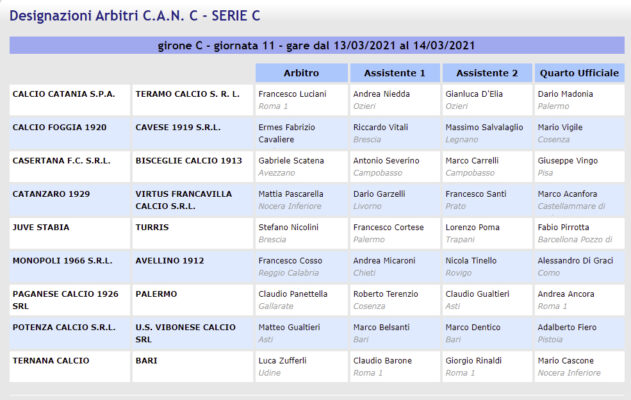 Serie C: Paganese-Palermo, arbitra Panettella. Le designazioni arbitrali dell’undicesima giornata
