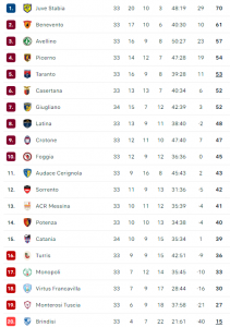 Terminano gli anticipi della 34^ giornata del campionato di serie C. Il Catania ha perso in casa per 3-2 contro il Giugliano. A segno per gli etnei Cianci e Bouah. Per gli ospiti decisive le reti di Ciuferri e Salvemini in doppietta.