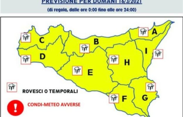 La Protezione civile regionale ha diffuso un avviso di allerta gialla per condizioni meteorologiche avverse valido fino alle ore 24 di domani 16 marzo. Lo rende noto il comune di Palermo.