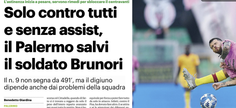 L’edizione odierna de “Il Giornale di Sicilia” si sofferma su Matteo Brunori che non riesce più s segnare.