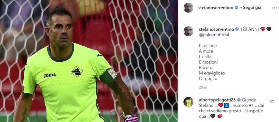 L’attuale portiere del Palermo, Pelagotti, ha risposto con un “ci vediamo presto” sotto la foto: