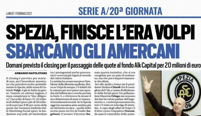 L’edizione odierna di “Tuttosport” si sofferma sulla cessione dello Spezia.