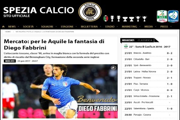 “Lo Spezia Calcio comunica di aver formalizzato l’accordo con il Birmingham City per l’arrivo in prestito, con diritto di riscatto, dell’attaccante classe ’90, Diego Fabbrini.