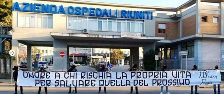 Nella giornata di oggi, gli ultras del Foggia si sono presentati davanti l’Ospedale Riuniti di Foggia esponendo uno striscione con scritto “Onore a chi rischia la propria vita per salvare quella del prossimo”. Di seguito il post pubblicato dalla pagina Instagram “Seriedignorante”.