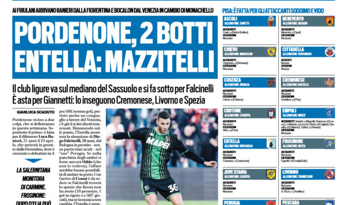 Tuttosport: “Pordenone, due botti. Entella: Mazzitelli. Tutte le trattative del giorno in serie B”