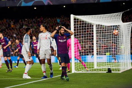 epa07541191 FC Barcelona's forward Luis Suarez reacts during the UEFA Champions League first leg semifinal match between FC Barcelona and Liverpool in Barcelona, Spain, 01 May 2019. EPA/Alejandro Garcia