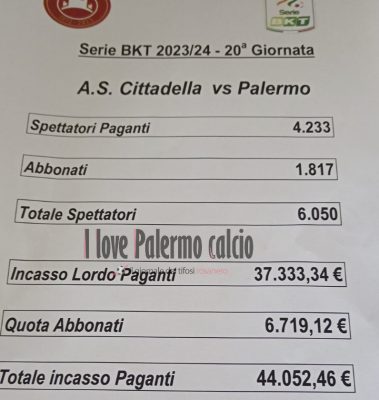 Sono 6.050 gli spettatori presenti oggi al "Tombolato" per la gara tra Cittadella e Palermo. In alto i dettagli del...