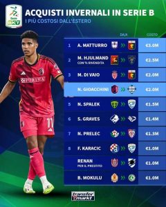 Il portale di statistiche "Transfermarkt" ha stilato la classifica degli acquisti del mercato invernale di serie B arrivati dai campionati...