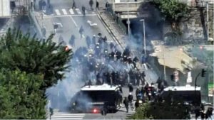 Gli scontri avvenuti a Genova prima del fischio d'inizio del derby in Coppa Italia tra Genoa e Sampdoria, con la...
