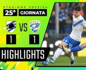 Termina 1-1 il match tra Sampdoria-Brescia. Un punto ed un gol a testa. Ecco gli highlights del match: