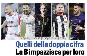 L'edizione odierna di Tuttosport si sofferma sui calciatori andati in doppia cifra in B. Dopo 24 turni di B, 5...