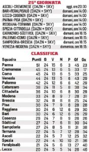 Serie B, inizia la 25a giornata. Il programma e la classifica aggiornata