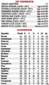 Serie B, inizia la 27a giornata. Il programma e la classifica aggiornata