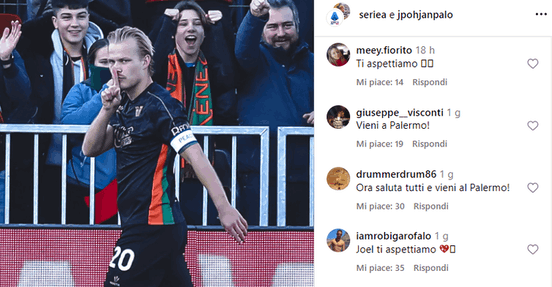 Frasi come “Joel ti aspettiamo”, “Palermo ti aspetta”, e “Ora saluta tutti e vieni al Palermo!” hanno riempito la sezione commenti, dimostrando il forte desiderio della tifoseria di vederlo giocare al Renzo Barbera. La prospettiva di aggiungere un talento del calibro di Pohjanpalo alla squadra alimenta la speranza e rinnova l’entusiasmo.