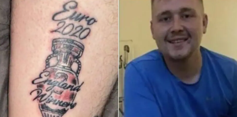 Il tifoso inglese infatti ha fatto il giro del web con il suo tatuaggio, prima della finale Italia-Inghilterra, della coppa con la scritta “England Winners, It’s coming home”.