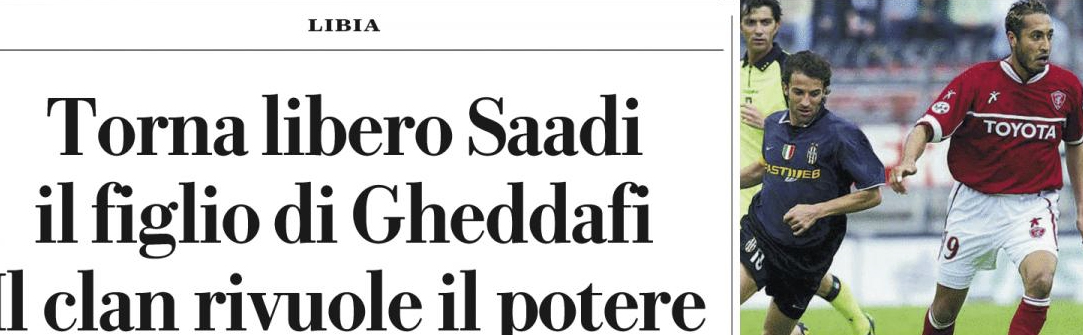 In Libia la ruota della storia sembra girare al contrario. Quello che molti prevedevano alla fine si sta avverando: per gli eredi di Muhammar Gheddafi non rimarrà soltanto il rimpianto, ci sarà un ritorno. Domenica il governo di Tripoli ha rimesso in libertà Saadi Gheddafi, il terzo figlio del colonnello che governò sul paese per 41 anni. Saadi è il figlio che provò a fare il calciatore in Italia, e che anche grazie alle relazioni di papà con il premier italiano Silvio Berlusconi, riuscì a indossare la maglia di Perugia, Udinese e Sampdoria. Un giocatore di bassa qualità, ma super- rispettato: fu bloccato dall’antidoping al Perugia, ma cambiò squadra due volte e continuò ad aggirarsi nel calcio italiano per mesi. Anche in qualità di azionista di Juventus e Roma, attraverso una finanziaria.
