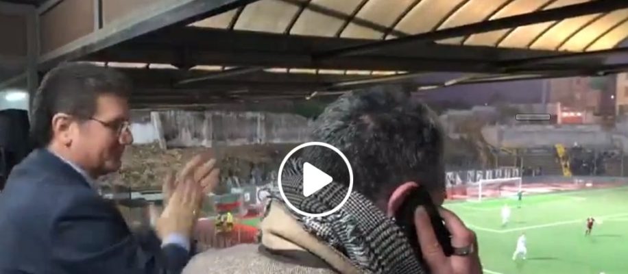 Dopo la vittoria contro l’Acireale, è scoppiata la festa tra gli spalti del “Giraud”. Tifosi dei bianchi in delirio, ma tra questi vi era un tifoso d’eccezione, il patron del club Alfonso Mazzamauro. Infatti, il presidente del Savoia, che sta continuando il suo momento perfetto avvicinandosi ancora di più al Palermo, lontano solo 3 punti, ha preso parte ai festeggiamenti dei tifosi sugli spalti. Ecco qui di seguito il video.