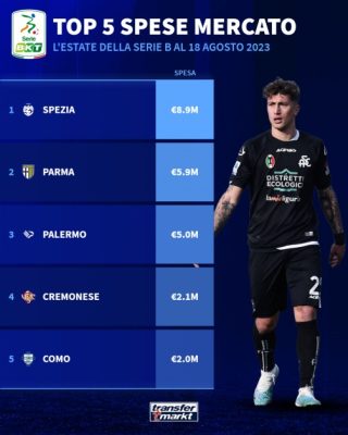 Subito dietro: Pisa, Bari e il Palermo. I rosanero vantano un valore di rosa di 26,2 Mio. €, tenendo conto di uno degli acquisti più esosi della società ovvero quello di Desplanches. Il Venezia con 31,2 Mio. €, tenterà nuovamente l’assalto alla divisione più alta. Il Como ha una delle proprietà più ricche del calcio italiano ma il valore della rosa rimane complessivamente quasi invariato +0,3 Mio. €.  Da notare come in circa due mesi il valore del campionato sia sceso di 86,3 Mio. €, e di 29,1 Mio. € rispetto ad un anno fa.
