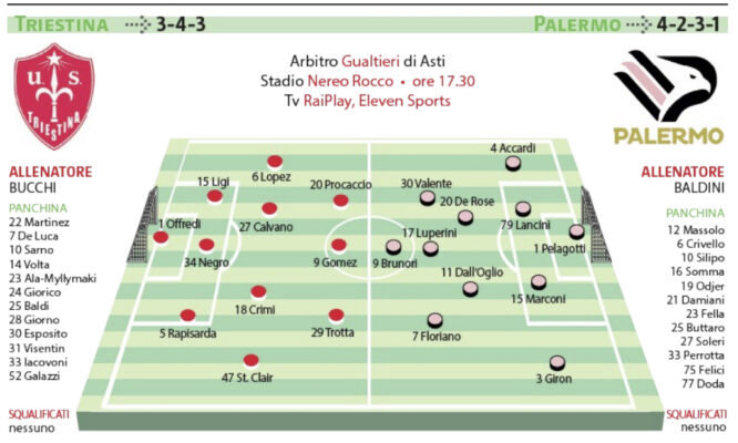 L’edizione odierna de “Il Giornale di Sicilia” si sofferma sulle probabili formazioni del match tra Triestina e Palermo.