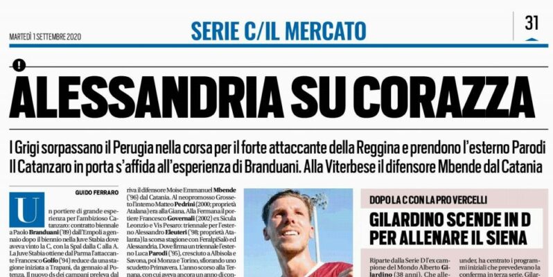Tuttosport: “Alessandria su Corazza, scavalcato il Palermo” – i dettagli