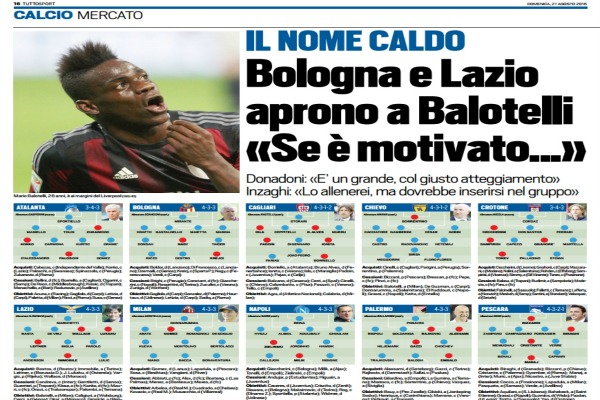 Tuttosport, calciomercato serie A: “Il nome caldo: Bologna e Lazio aprono a Balotelli: «Se è motivato…». Palermo adesso accelera”
