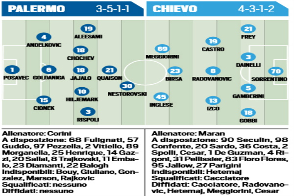 Tuttosport: “Corini, il passato e il bagno di folla. Le probabili formazioni di Palermo-Chievo”