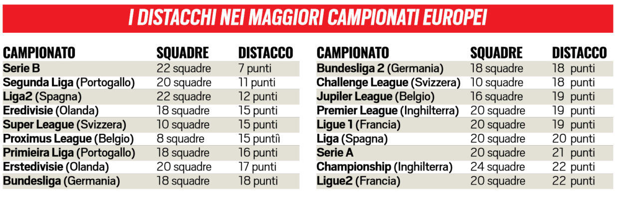Tuttosport: “Dalla prima all’ultima solo 7 punti di differenza: caso unico in Europa. Ecco la nuova serie B”