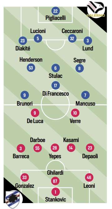 Mignani alla prima si trova a gestire un’emergenza a centrocampo. «Sono orgoglioso di essere stato scelto dal Palermo e da uno dei gruppi più importanti del mondo – dice Mignani -. Metterò tutto il mio impegno per la squadra. Ho trovato ragazzi disponibili, in campo ho proposto qualche idea. Non si può leggere un libro di 300 pagine in due giorni. La Samp è in forma, servirà anche un pizzico di fortuna ma noi proveremo a fare una grande partita. Sono genovese e sono cresciuto nella Samp, ma ho imparato a gestire le emozioni».
