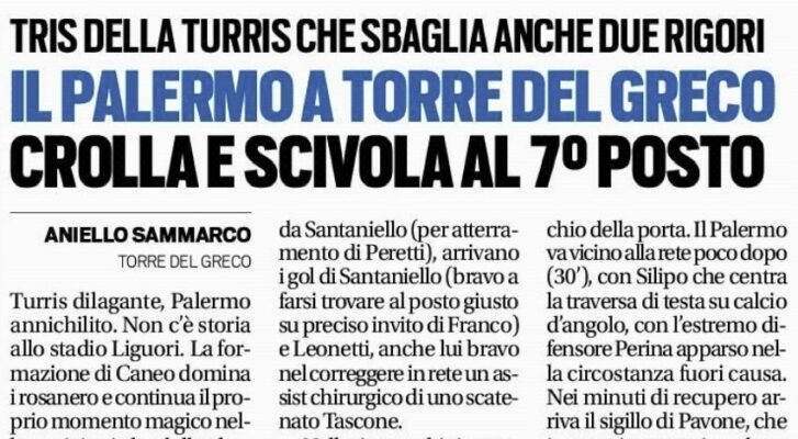 Tuttosport: “Il Palermo crolla a Torre del Greco e scivola al 7° posto”