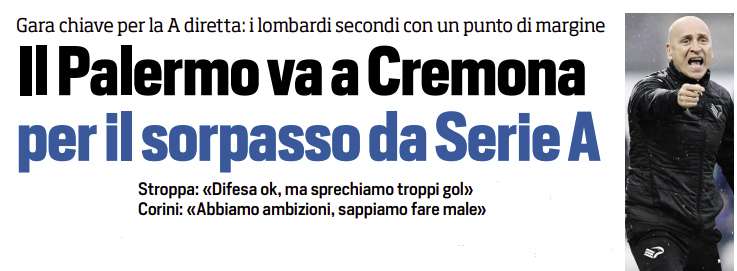 Tuttosport: “Il Palermo va a Cremona per il sorpasso da Serie A”