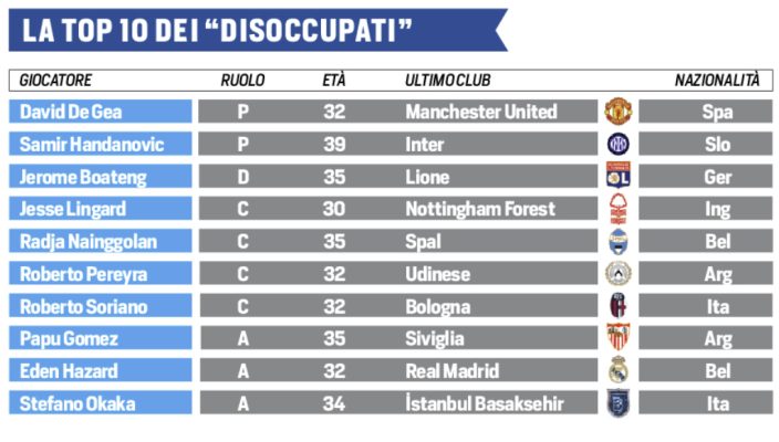 Piatto davvero molto ricco in mezzo campo, dove c’è abbondanza di scelte e possibilità. Il nome più glamour a livello internazionale è quello di Jesse Lingard, conteso da West Ham (sarebbe un ritorno), Wolverhampton, Fenerbahce e Besiktas. Sulla trequarti poi ci sono altre due occasioni decisamente prelibate: Eden Hazard e Roberto Pereyra. L’ex Real Madrid è reduce da un quadriennio da incubo e potrebbe aspettare gennaio per ripartire dall’MLS, anche se nelle ultime si rincorrono con sempre maggior insistenza le voci di un possibile ritiro. A soli 32 anni il belga potrebbe, infatti, smettere. E pensare che soltanto quattro anni era stato eletto miglior giocatore dell’Europa League vinta col Chelsea, che l’aveva ceduto al Real per 100 milioni. Il Tucu, invece, è ancora a spasso, nonostante il cambio di agente (è passato da Pastorello a Cosentino). Il segnale di come non sempre siano i procuratori a segnare il destino di un giocatore. L’argentino ex Juve ha rifiutato il Besiktas a luglio perché sognava l’Inter, ma avrebbe accettato di buon grado Fiorentina o Torino. Nulla da fare e adesso si trova dinanzi a un bivio: da un lato le ricche offerte brasiliane (Santos in pole sul Palmeiras) dall’altro restare in Italia come desidera la famiglia, anche se le proposte scarseggiano (lo vuole la Sampdoria in B e l’Udinese gli ha offerto un annuale a cifre inferiori rispetto a quelle che percepiva l’anno passato). Cercano una nuova opportunità in Serie A anche Roberto Soriano e Radja Nainggolan. Il Ninja è stato proposto (finora) senza successo a Frosinone e Salernitana; mentre l’ex capitano del Bologna sperava di restare sotto le Due Torri e non appare convinto di scendere di categoria nonostante il pressing della Samp. Pronti a rientrare in Italia dopo le ultime esperienze all’estero Omar El Kaddouri (ex Paok) e Marco Fossati (ex Hajduk Spalato). Il marocchino piace all’Ascoli; mentre per l’ex Verona il Perugia è in vantaggio sul Sudtirol.