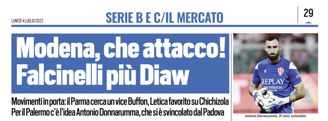 Tuttosport: “Modena, che attacco! Per il Palermo c’è l’idea Antonio Donnarumma. Tutte le trattative del giorno in serie B”