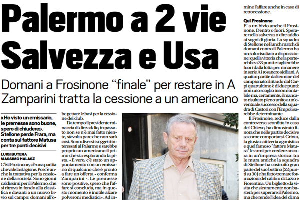 Tuttosport: “Palermo a due vie: salvezza e Usa. Domani a Frosinone “finale” per restare in A. Zamparini tratta la cessione a un americano”